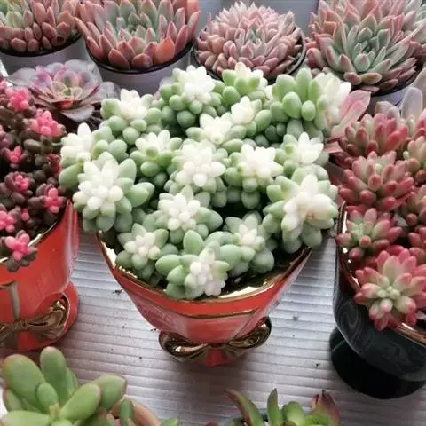 虹之玉锦是景天科景天属的多肉植物,为虹之玉的锦化品种。叶片呈美丽的粉红色。在通风的地方加以充分的阳…