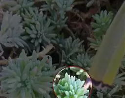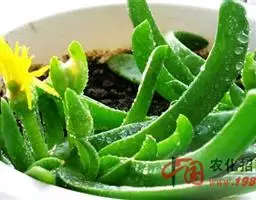 蓝黛莲是一种景天科厚叶草属植物。叶片呈略扁的圆柱形,排列成莲座状;颜色为灰绿色,…