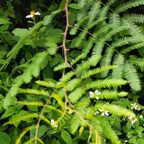 光荚含羞草 Kuntze)是豆科,含羞草属落叶灌木,高可达6米;小枝无刺,二回羽状复叶,叶轴无刺,…