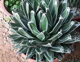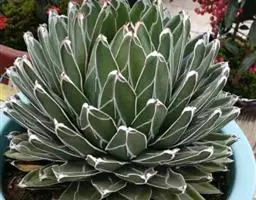 皇后龙舌兰是天门冬科、龙舌兰属多年生草本多浆植物。无主茎,叶丛生,莲座状,株幅40厘米。叶较多,…