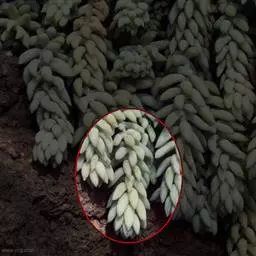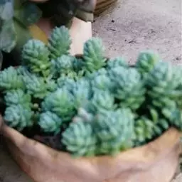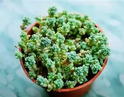 玉米石是景天科、景天属植物。多年生草本多浆植物。植株低矮丛生,多分枝。叶膨大成圆筒形、卵形或近小球形,…