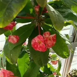 虎刺梅:别称铁海棠,是蔓生灌木植物。茎多分枝,长60-100厘米,直径5-10毫米,具纵棱,密生硬…