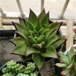 花乃井是景天科拟石莲花属的多肉植物,原产于墨西哥。株型小巧,叶片饱满,在阳光充足、温差大的环境下叶…