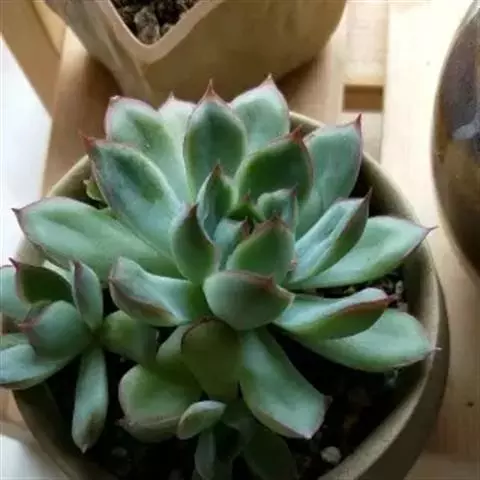 大和锦是景天科拟石莲花属的多肉植物。肉质叶排成紧密的莲座状,广卵形至散三角卵形,背面突起呈龙骨状,…