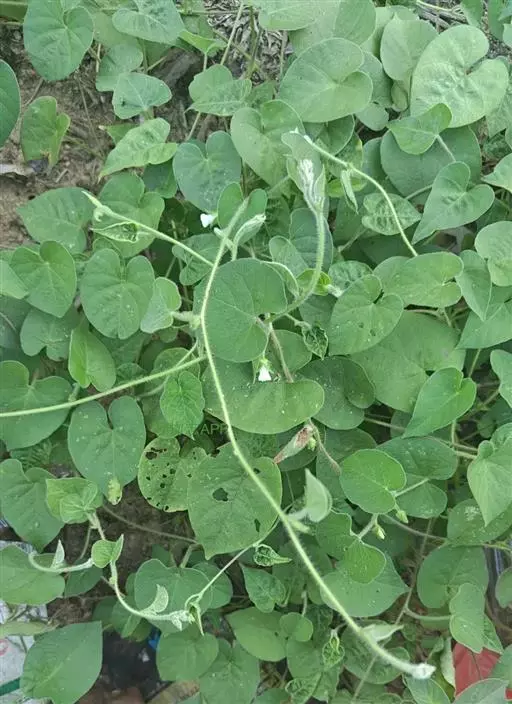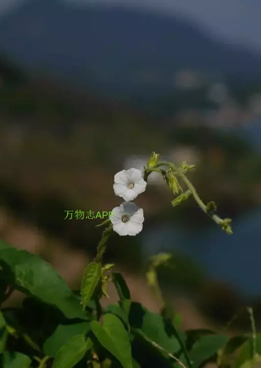 攀援或缠绕草本;茎细长,径约1.5-4毫米,有细棱,被灰白色倒向硬毛。叶心形或心状三角形,长4-9.5厘米,宽3-7厘米,顶端渐尖,基部心形,全缘或很少为不明显的3裂,两面被长硬毛,侧脉6-7对,在两面稍突起,第三次脉近于平行,细弱;叶柄长1.5-8厘米,毛被同茎。花序腋生,短于叶柄,花序梗长3-15毫米,或有时更短则花梗近于簇生,毛被同叶柄,通常着生2朵花,有时1或3;苞片小,线状披针形,被疏长硬毛;花梗纤细,长8-15毫米,毛被同叶柄;萼片5,外萼片三角状披针形,长8-10毫米,宽4-5毫米,基部耳形,外面被灰白色疏长硬毛,具缘毛,内面近于无毛,在内的2萼片线状披针形,与外萼片近等长或稍长,萼片于结果时稍增大;花冠白色,狭钟状,长1.2-1.5(-1.9)厘米,冠檐浅裂,裂片圆;瓣中带被短柔毛;雄蕊5,内藏,长3毫米,花丝向基部渐扩大,花药卵状三角形,基部箭形;子房圆锥状,无毛,花柱棒状,长3毫米,柱头头状,2浅裂。蒴果近球形,径约9毫米,果瓣内面光亮。种子4,卵状三棱形,高4毫米,毛被不尽相同,被微毛或被短绒毛,沿两边有时被白色长绵毛。