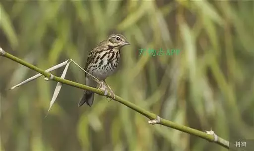 树鹨是小型鸣禽,外形和林鹨相似,体长15-16厘米。上体橄榄绿色具褐色纵纹,尤以头部较明显。…