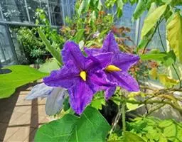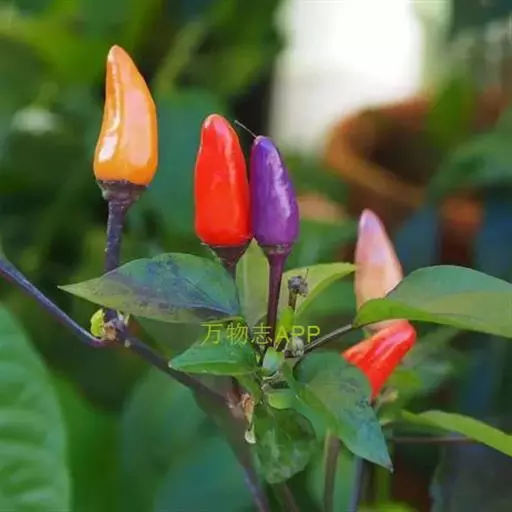 一年生或有限多年生植物;高40-80厘米。茎近无毛或微生柔毛,分枝稍之字形折曲。叶互生,枝顶端节不伸长而成双生或簇生状,矩圆状卵形、卵形或卵状披针形,长4-13厘米,宽1.5-4厘米,全缘,顶端短渐尖或急尖,基部狭楔形;叶柄长4-7厘米。花单生,俯垂;花萼杯状,不显著5齿;花冠白色,裂片卵形;花药灰紫色。果梗较粗壮,俯垂;果实长指状,顶端渐尖且常弯曲,未成熟时绿色,成熟后成红色、橙色或紫红色,味辣。辣椒花有两种,一种是白的,一种是紫的,两种花都有四瓣花瓣至六瓣花瓣三种。而且两种花结出来的辣椒也有所不同:紫花结出来的辣椒是紫的,而白花结出来的辣椒就是普通的红辣椒。种子扁肾形,长3-5毫米,淡黄色。花果期5-11月。 [1-2]