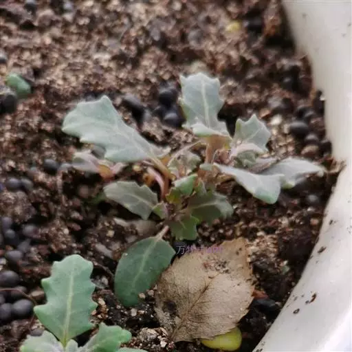 2.播种前先将准备好的营养土装入盆内,距盆沿3-4cm即可,并浇透水,待土壤稍干即可间隔10-12cm播种1-2粒菜籽,播后覆盖1cm细土。