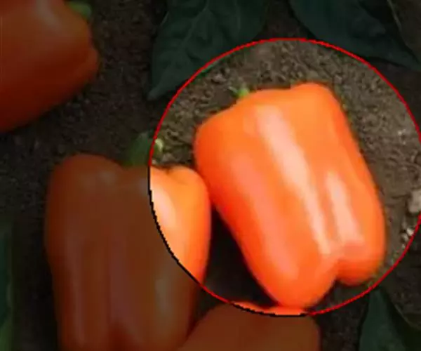 植物体粗壮而高大。叶矩圆形或卵形,长10-13厘米。果梗直立或俯垂,果实大型,近球状、圆柱状或扁球状,多纵沟,顶端截形或稍内陷,基部截形且常稍向内凹入,味不辣而略带甜或稍带椒味。