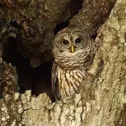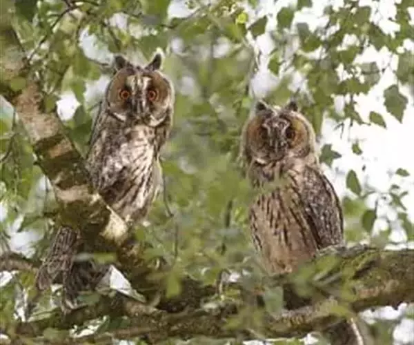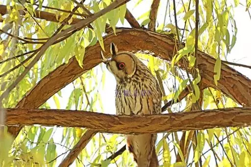 长耳鸮(学名:Asio otus),耳羽簇长,位于头顶两侧,竖直如耳。面盘显著,棕黄色,皱翎完整,白色而缀有黑褐色。上体棕黄色,而密杂以粗著的黑褐色羽干纹;颏白色,其余下体棕白色而具粗著的黑褐色羽干纹。腹以下羽干纹两侧具树枝状的横枝。跗蹠和趾密被棕黄色羽,眼橙红色。以小鼠、鸟、鱼、蛙和昆虫为食。对于控制鼠害有积极作用,应大力保护。属于中国国家二级保护动物。