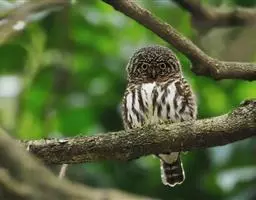 横斑腹小鸮:是鸱鸮科、小鸮属的一种鸟类。体长20厘米左右。面盘不明显,没有耳羽簇,皱领也不显著。…