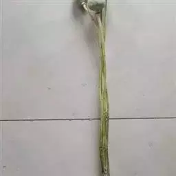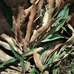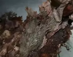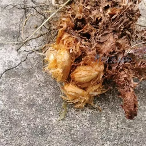 本品呈不规则的长块状,长10~750px,直径2~250px。表面深棕色,残留金黄色绒毛;上面有数个红棕色的木质叶柄,下面残存黑色细根。质坚硬,不易折断。无臭,味淡、微涩。生狗脊片呈不规则长条形或圆形,长5~500px,直径2~lOcm,厚1.5~5mm;切面浅棕色,较平滑,近边缘1~4mm处有1条棕黄色隆起的木质部环纹或条纹,边缘不整齐,偶有金黄色绒毛残留;质脆,易折断,有粉性。熟狗脊片呈黑棕色,质坚硬。