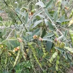 荚果带形,长7.5-13厘米,宽12-15毫米,扁平,被细长糙伏毛;种子每荚8-10颗,近方形,长和宽5-10毫米,扁平。花期8月,果期11月。