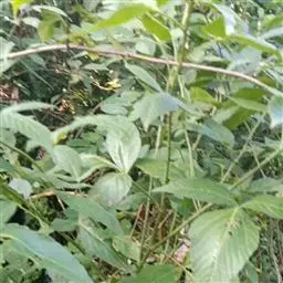 羽状复叶具3小叶;托叶线状披针形,长5-11毫米;小托叶锥状,长约4毫米;小叶菱形或卵形,长4-18厘米,宽4-20厘米,中部以上不规则浅裂,裂片小,急尖,侧生小叶的两侧极不等,仅下面微被毛。