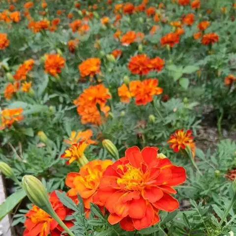 万寿菊是菊科万寿菊属一年生草本植物,别名孔雀菊、缎子花、臭菊花、西番菊、红黄草、小万寿菊、臭芙蓉、孔雀草。万寿菊茎近基部分枝。叶羽状分裂,长5-10厘米,宽4-8厘米,裂片长椭圆形或披针形,具锐齿,上部叶裂片齿端有长细芒,叶缘有少数腺体。头状花序单生,径5-8厘米,花序梗顶端棍棒状。总苞长1.8-2厘米,径1-1.5厘米,杯状,顶端具尖齿。舌状花黄或暗橙黄色,长2.9厘米,舌片倒卵形,长1.4厘米,基部成长爪,先端微弯缺。管状花花冠黄色,长约9毫米,冠檐5齿裂。瘦果线形,被微毛;冠毛有1-2长芒和2-3短而钝鳞片。花期7-9月。万寿菊中国各地均有栽培,在广东和云南南部、东南部已归化,国外原产墨西哥。万寿菊对土壤要求不严,但以肥沃疏松排水良好的土壤为好。耐移栽,种子发芽适温21-24℃,植株生长适合温度为20-29℃。喜温暖和阳光充足的环境,不