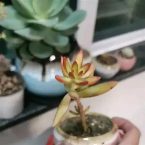 小红衣是景天科、拟石莲花属的一种多肉植物。叶片匙形,扁平细长,叶表具白粉,有明显的半透明边缘,…