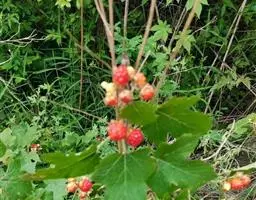 覆盆子为灌木,高1—2米;枝褐色或红褐色,幼时被绒毛状短柔毛,疏生皮刺。小叶3-7枚,长卵形或椭圆形,…