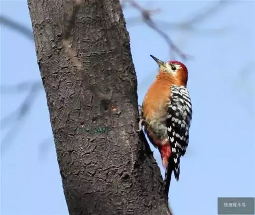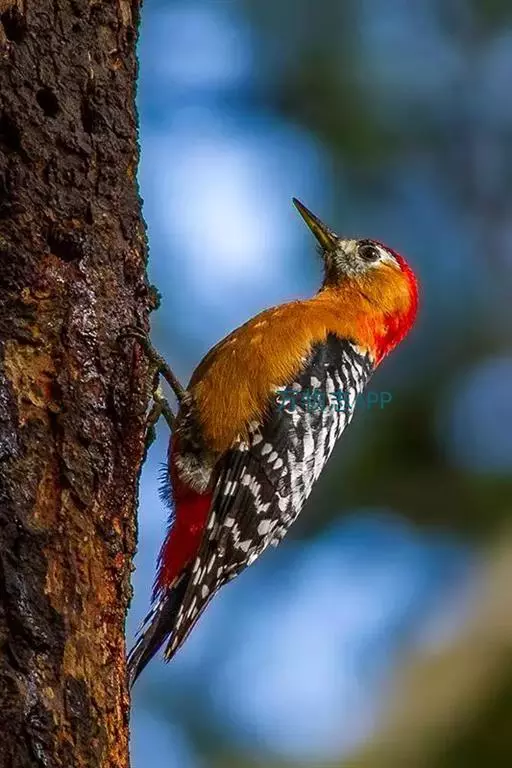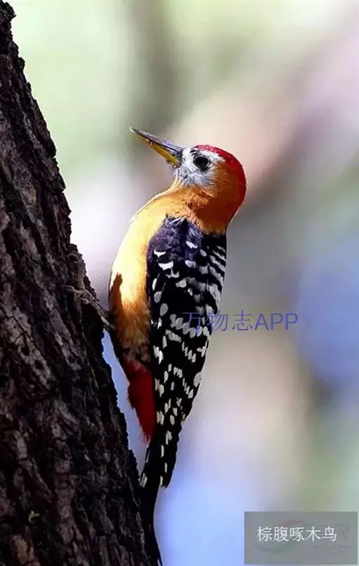 棕腹啄木鸟为啄木鸟科,啄木鸟属是中等体型的鸟类,体长约20厘米。头顶部具红色斑带。脚强健,有趾4个,…