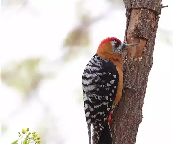 小斑啄木鸟,是啄木鸟科、啄木鸟属的小型鸟类,体长14-18厘米。额和颊白色,头顶雄鸟红色,雌鸟黑色。…