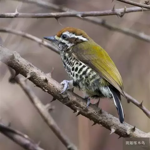 斑姬啄木鸟是鴷形目啄木鸟科姬啄木鸟属鸟类,又叫姬啄木鸟、小啄木鸟。体长9-10厘米。嘴尖而略粗壮,…