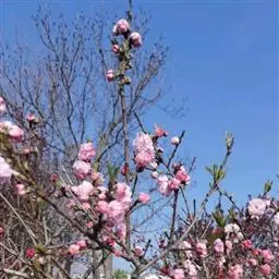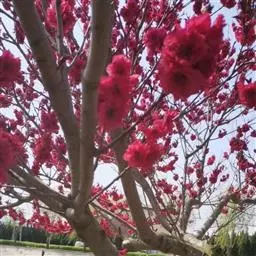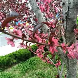 红叶碧桃三月份先花后叶,烂漫芳菲,妩媚可爱,是优良的观花树种。红叶碧桃在山坡、水畔、石旁、墙际、庭院、草坪边俱宜栽植,也可盆栽、切花或作桩景。红叶碧桃性喜光,耐旱,喜肥沃而排水良好之土壤,不耐水湿。耐寒,在北京北可露地越冬。因其着花繁密,栽培简易,故南北园林中皆多应用。