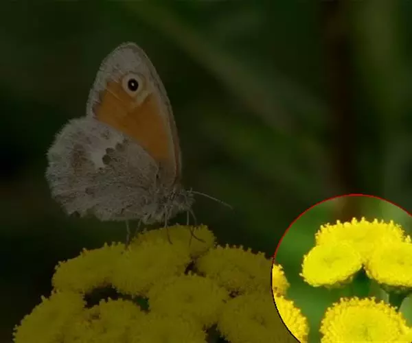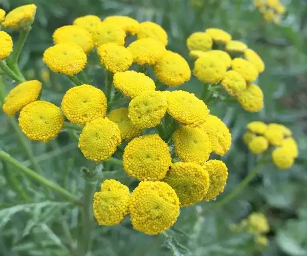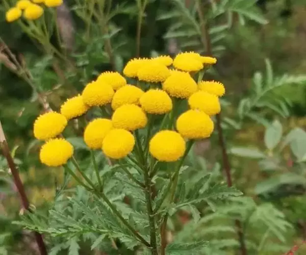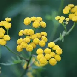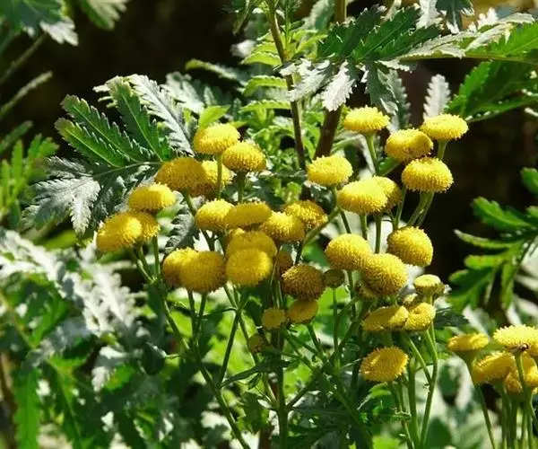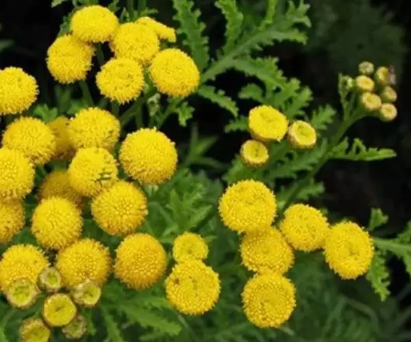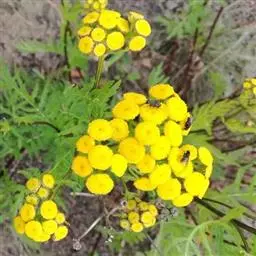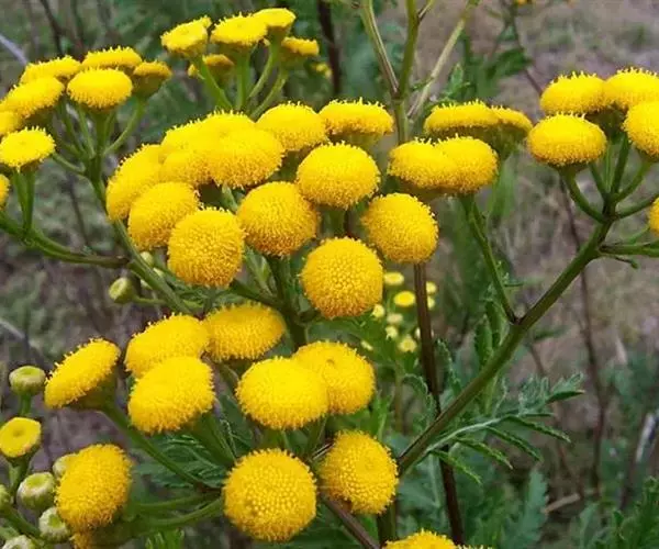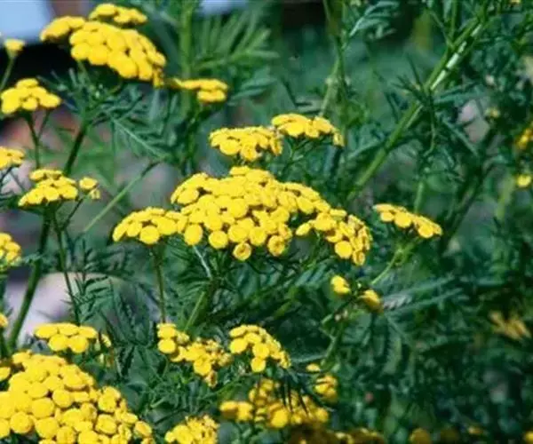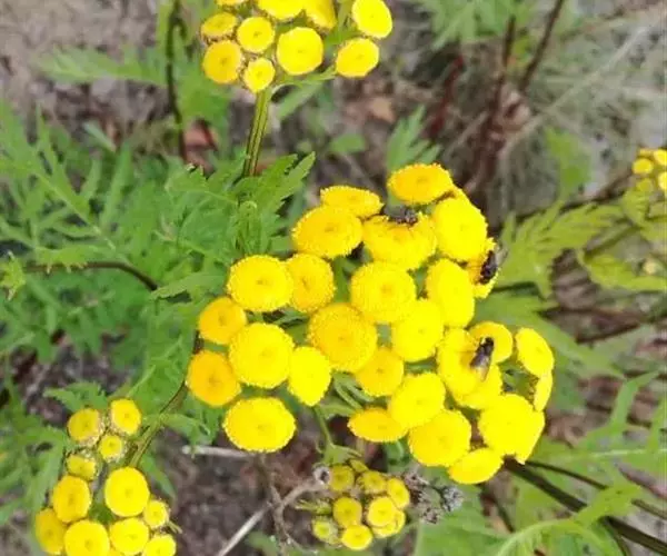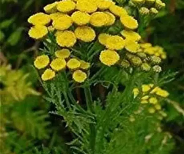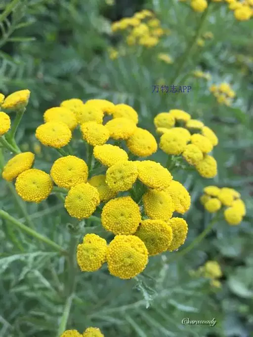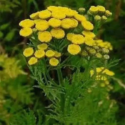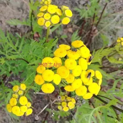 菊蒿,别名:艾菊,拉丁文名:Tanacetum vulgare L. 菊科、菊蒿属多年生草本,茎常无毛:无营养短枝。茎生叶多数,椭圆形或椭圆状卵形,裂片卵形、线状披针形、斜三角形或长椭圆形,全缘或有浅齿或半裂呈三回羽状分裂,羽轴有节齿;叶绿或淡绿色,有极稀疏毛,下部茎生叶有长柄,中上部茎生叶无柄。头状花序排成稠密伞房或复伞房花序:草质,边缘白或浅褐色窄膜质,先端膜质扩大,外层卵状披针形,中内层披针形或长椭圆形,全部小花管状,冠缘浅齿裂。花果期6-8月。茎及头状花序含杀虫物质,可作杀虫剂。