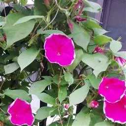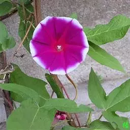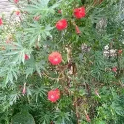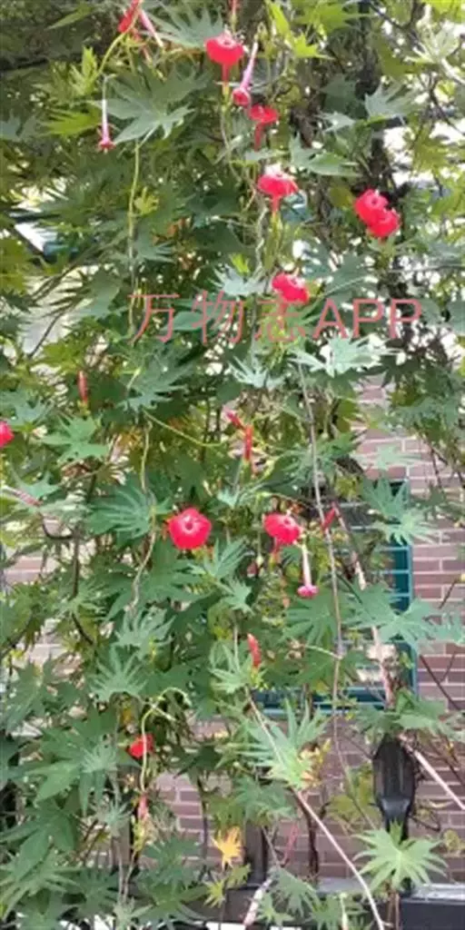 葵叶茑萝为旋花科的一种一年生蔓生草本。茎细长达数尺,其茎卷绕他物。叶掌状深裂端尖。夏月叶腋抽花轴,缀以数花,花冠长筒形,合瓣浅裂,色赤亦有白,雄蕊五枚,雌蕊一枚 ,秋后结子色黑。蒴果卵圆形,果熟期不一致。种子黑色,长卵形,有棕色细毛。花期7月至10月。茑萝的细长光滑的蔓生茎,长可达4-5米,柔软,极富攀援性,是理想的绿篱植物。它清晨开花,太阳落山后,花瓣便向里卷起,成苞状。它是一种细致可爱的植物,叶片纤细,似羽毛一样轻盈。每天开放一批,晨开午后即蔫。