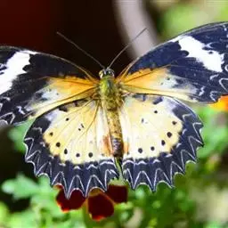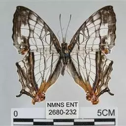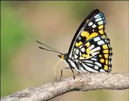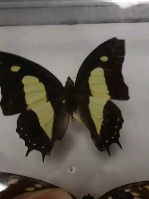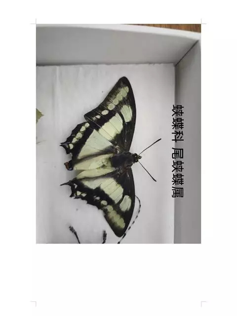 大二尾蛱蝶两翅正面黑色,中域有一浅绿色大型宽带纹,两翅反面浅绿色,中域有一缀黑边的褐色弧纹,…