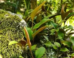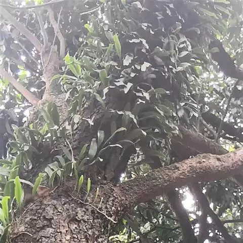 附生于阴湿的岩石或树上。分布于陕西、甘肃及华南大部分地区。