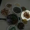 7、所有食材放入大碗中,加苹果醋、盐、麻油、少许糖(很少量,不能尝出甜味)和少许鸡精拌匀,装盘时上面撒上白芝麻即可。