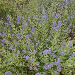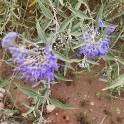 直立灌木,高25~60厘米,密被微毛。叶对生,具短柄,卵形或卵状矩圆形,长2~5厘米,先端钝,基部浑圆,边缘有粗锯齿,两面密披灰色短柔毛。聚伞花序,为具柄的花束,多花,长1~1.5厘米;萼钟形,长约2毫米,被微毛,5深裂,裂片披针形;花冠蓝色,管长约4毫米,5裂,有1裂片较大,边缘有睫毛,外面被微毛;雄蕊4,2长2短,伸出;花柱线形,两短裂。蒴果球形,外面被粗毛,分裂为4个凹陷的粟瓣,瓣缘内弯如翅,抱着种子。花期6~10月。