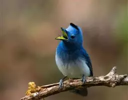 蓝翅叶鹎:小型鸟类,体长15-18厘米。雄鸟通体草绿色,尾蓝绿色,肩和翅亮蓝 色,胸缀有黄色,…