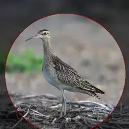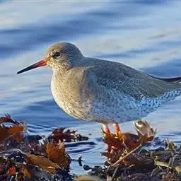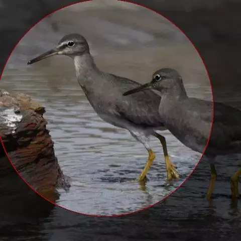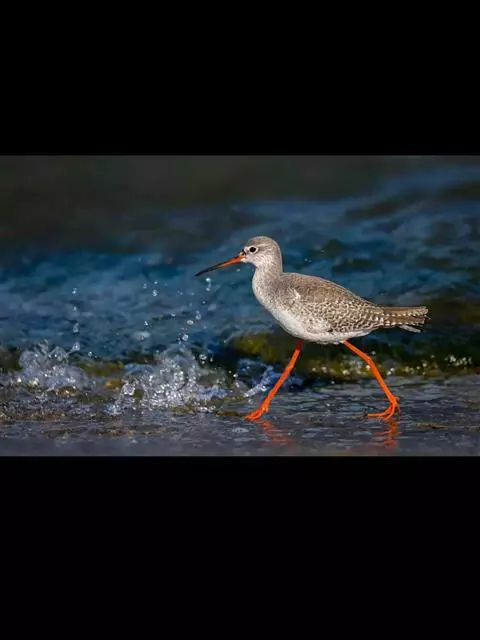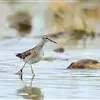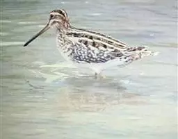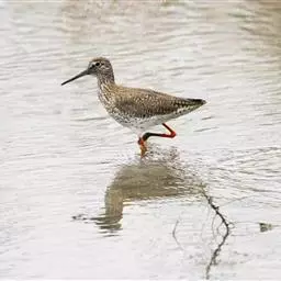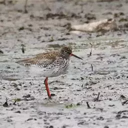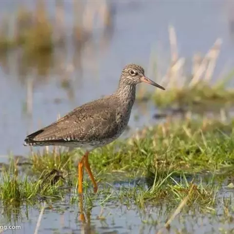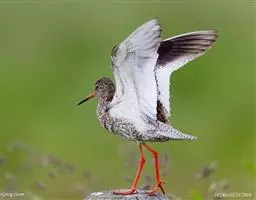红脚鹬:体长28厘米,上体褐灰,下体白色,胸具褐色纵纹。飞行时腰部白色明显,次级飞羽具明显白色外缘。…