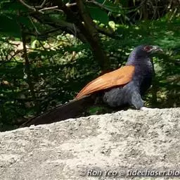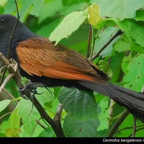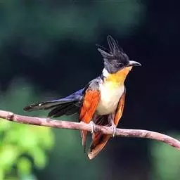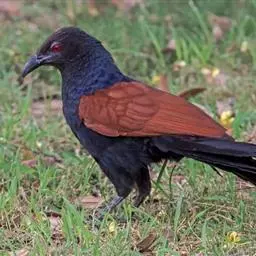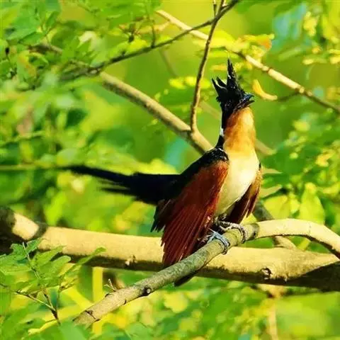 红翅凤头鹃:体长约38厘米,顶冠及凤头黑色,具显眼的直立凤头,背及尾黑色而带蓝色光泽,翅栗红色,…