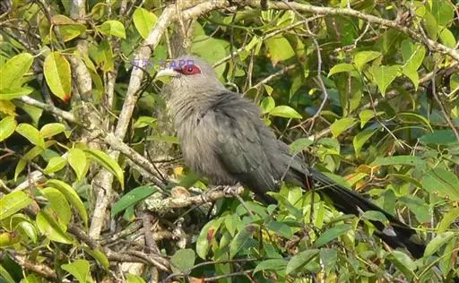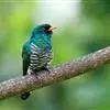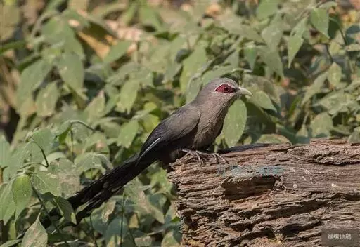绿嘴地鹃(学名:Phaenicophaeus tristis):体形似小鸦鹃,但羽色大致绿灰;嘴绿色,头侧眼的周围有一裸区;后爪弯曲。虹膜赤红色,眼外周裸露皮肤繁殖期为赤红色,非繁殖期为暗红色。嘴绿色,基部及先端色暗,近嘴角处常沾红色,非繁殖期下嘴黄褐色,脚石板绿色。幼鸟和成鸟相似,但缺少光泽。枕、颈和上背沾棕栗色,下嘴橙褐色,尾较短。