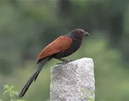 小鸦鹃,是杜鹃科、鸦鹃属的中型鸟类,体长30-40厘米,外形似褐翅鸦鹃,通体黑色,肩和翅栗色,…