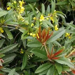 大叶小檗是小檗科小檗属植物,常绿灌木,高可达2米。老枝具棱槽,叶革质,椭圆状倒披针形,基部楔形,上…