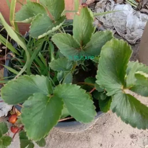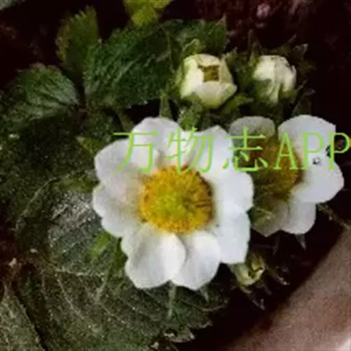 草莓(英文学名:strawberry、拉丁学名:Fragaria × ananassa Duch. 别名: 凤梨草莓),多年生草本植物。高10-40厘米,茎低于叶或近相等,密被开展黄色柔毛。叶三出,小叶具短柄,质地较厚,倒卵形或菱形,上面深绿色,几无毛,下面淡白绿色,疏生毛,沿脉较密;叶柄密被开展黄色柔毛。聚伞花序,花序下面具一短柄的小叶;花两性;萼片卵形,比副萼片稍长;花瓣白色,近圆形或倒卵椭圆形。聚合果大,宿存萼片直立,紧贴于果实;瘦果尖卵形,光滑。花期4-5月,果期6-7月 。