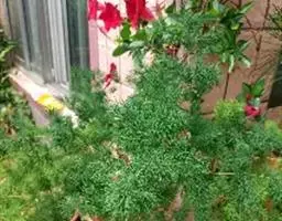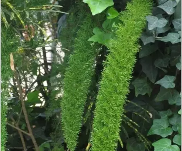 狐尾武竹因植株形似狐狸的尾巴而得名,植株丛生,茎直立生长,高30厘米至60厘米,稍有弯曲,但不下垂。又名狐尾天冬,是天门冬的改良品种,枝叶比武竹密。