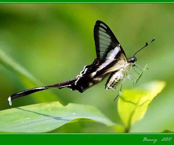 白带燕凤蝶,Lamproptera curia (Fabricius),凤蝶科燕尾凤蝶属的一个物种。具有独特的外形,突出特征是有长而宽的折叠尾和较长的触角。