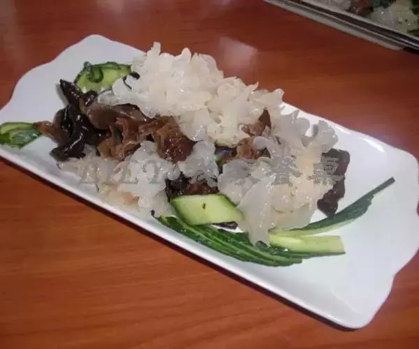 黄瓜100克,银耳、木耳各20克,葱丝、姜丝、盐、味精、香油各适量。