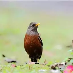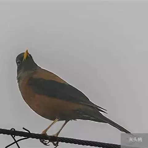 灰头鸫:中型鸟类,体长23-27厘米。整个头、颈和上胸褐灰色,两翅和尾黑色,上、下体羽栗棕色。…