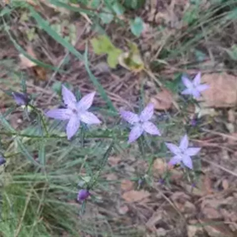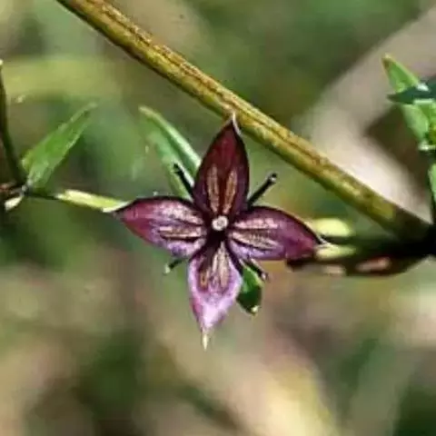 一年生草本,高20-70厘米。根黄色。茎直立,四棱形,棱上具窄翅,基部直径2-4毫米,多分枝,枝细瘦,斜升。叶无柄,线状披针形至线形,长10-45毫米,宽1.5-9毫米,两端渐狭,下面中脉明显突起。圆锥状复聚伞花序具多数花;花梗直立,四棱形,长至1.5厘米;花5数,直径1-1.5厘米;花萼绿色,长于或等于花冠,裂片线形,长6-12毫米,先端锐尖,背面中脉明显;花冠浅蓝色,裂片椭圆状披针形,长6-11毫米,先端急尖,基部有2个腺窝,腺窝窄矩圆形,沟状,周缘具长柔毛状流苏;花丝线形,长达6毫米,花药狭矩圆形,长约1.6毫米;子房无柄,椭圆状卵形至卵状披针形,花柱粗短,柱头2裂,裂片半圆形。蒴果卵形,长至1.2厘米;种子深褐色,矩圆形,长0.6-0.8毫米,表面具小瘤状突起。染色体2n=18,20,24。花果期8-10月。