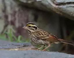 栗斑腹鹀:属小型鸣禽。体重19-25克,体长145-167毫米。头顶至背栗红色,眼先和颧纹黑褐色,…