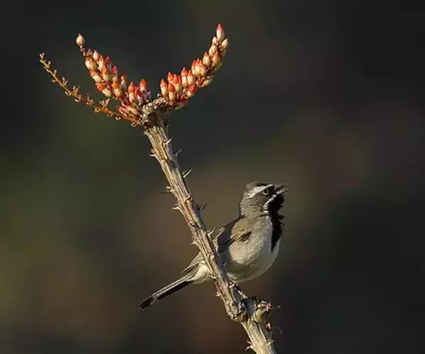 黑喉漠鹀属小型鸣禽。一般主食植物种子。喙为圆锥形,与雀科的鸟类相比较为细弱,上下喙边缘不紧密切合而微向内弯,因而切合线中略有缝隙。