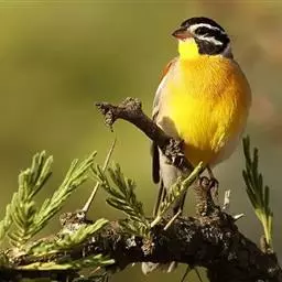 黄眉鹀是雀形目鹀科鹀属鸟类,体型中等偏小。雄鸟头部主要为黑色,冠纹白色,眉纹前段黄色而后段白色,…