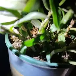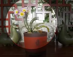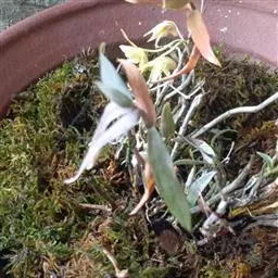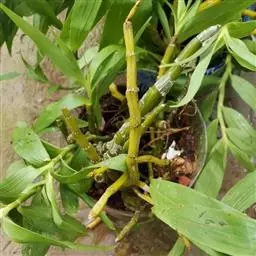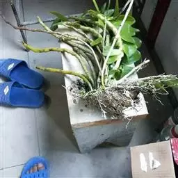 通常选用四壁多孔的塑料或陶瓷花盆,用碳根、泥炭藓、树皮块、木炭块等作盆栽材料。根据兰苗的大小,选择不同规格的花盆,但不宜用大盆栽小苗口上述栽好材料在使用前必需在清水中浸泡1天以上备用。盆底要多垫大瓦片或碎砖块,深度至盆底约1/3处,然后将兰苗放于盆中央,并在一旁插一细竹竿以固定兰苗,再填入其他栽培材料,注意根与根之间用材料隔开。