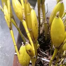盆裁3年以上的植株或部分秋石斛茎的顶部或基部长有小植株时,可以进行切芽繁殖。选择具有3-4片叶,2-3条根,根长4-5厘米的小植株,从母株上切下,用草木灰或70%的代森锰锌处理伤口,将苗植入盆中即可。汪意要浅植。栽培2年后一般可开花成为商品花。