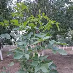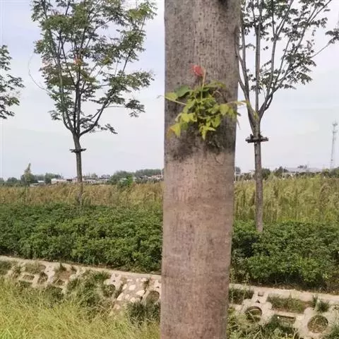 管理:苗木栽植后,加强林地灌水、松土、除草工作。栽植后前3次灌水灌透灌实,确保苗木成活率。庭院绿化和街道树移植大规格苗木或大树时,栽植后应做截干和扶持处理。截干可减少树体水分蒸腾,防止人为伤及树皮,用稻草绳绕到树干高度的1/2-2/3处。扶持则是为了固定树干,有利于生根成活,一般多用三角形支架扶持。生长期要及时抹除树干下部的萌生枝芽,使其营养和水分满足上部枝芽生长的需要,以利于形成较好的树冠,并适时防治病虫害。
