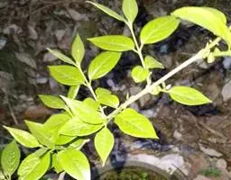 当年生枝淡黄色,密被短绒毛,渐秃净,年生枝灰白色,被稀疏毛或无毛,皮孔细小,椭圆形,褐色。